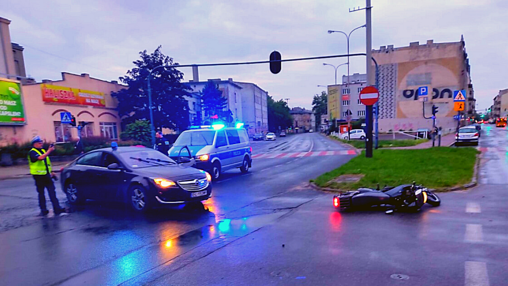Gdy dojechał do skrzyżowania z ul. Wólczańską nie zastosował się do nakazu jazdy w prawo i skręcił w lewo w ul. Wólczańską kontynuując ucieczkę „pod prąd” po czym dojeżdżając do skrzyżowania ulic Wólczańskiej i Struga ponownie wjechał na czerwonym świetle i utracił panowanie nad motocyklem doprowadzając do jego wywrócenia.