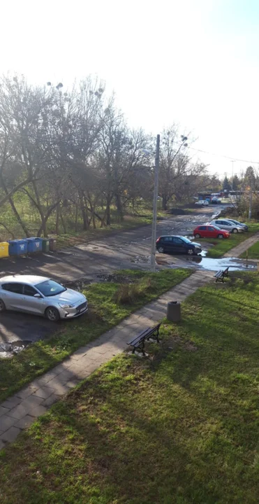 Mieszkańcy opowiadają też o zapadniętym chodniku i wielkich kałużach.