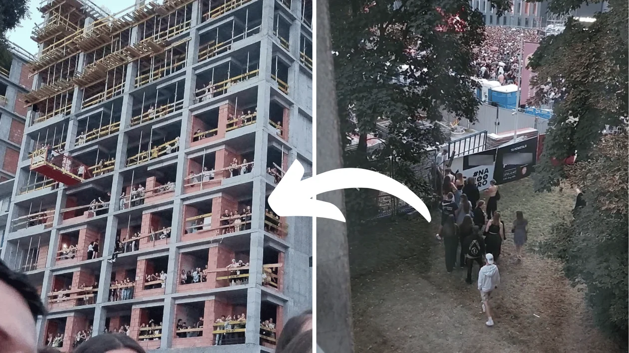 Koncertowicze weszli na budowany wieżowiec bez żadnych zabezpieczeń
