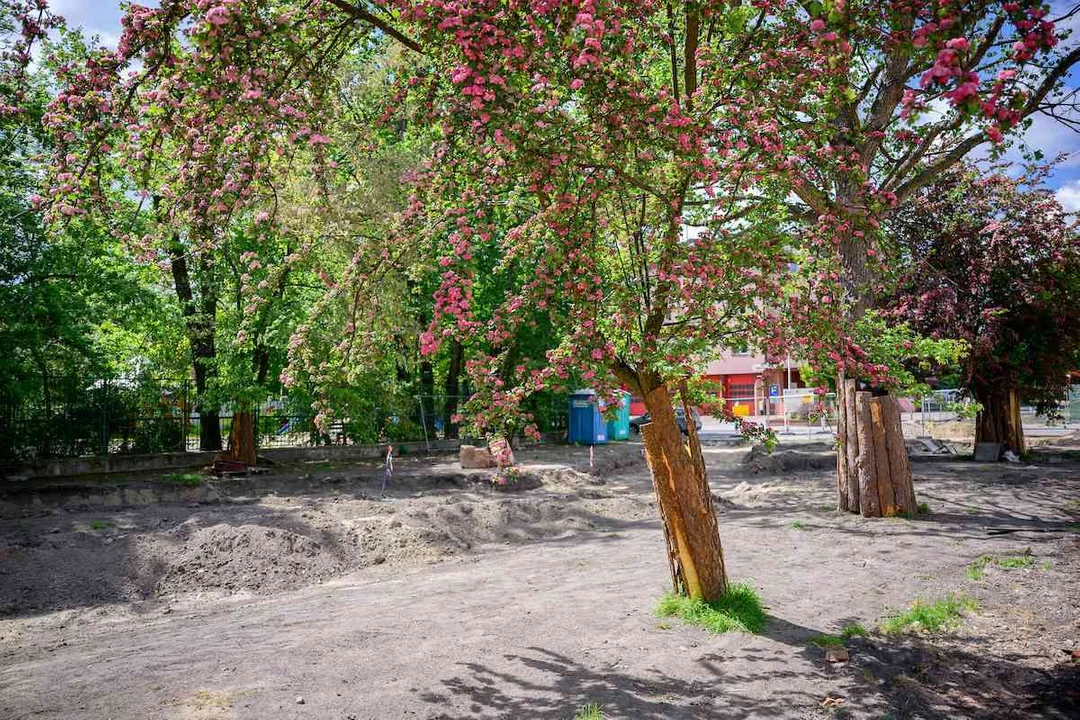 Pojawi się tam ponad 40 nowych drzew i 10 tysięcy innych roślin, do tego zabawki dla dzieci, park sensoryczny, ogródek owocowo-warzywny, a nawet sucha rzeka. Będą nowe ławki, fotele, leżaki obrotowe, kosze na śmieci, stojaki na rowery, tablice edukacyjne, pergole, trejaże z żywej wikliny i plenerowa siłownia, a także osiem hoteli dla owadów i pięć poidełek dla zwierząt.