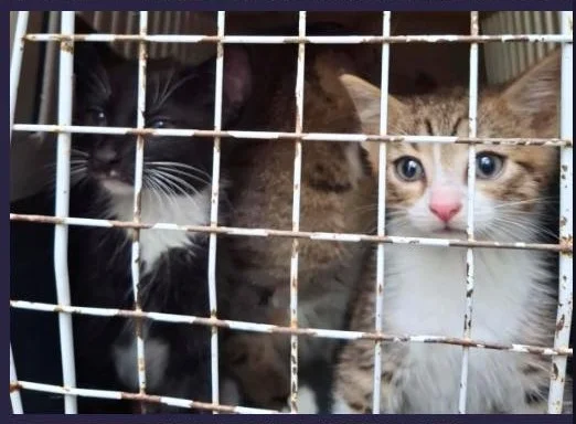 W kartonie znajdowało się siedem malutkich kociąt i dwie dorosłe kotki. Żadne ze zwierząt nie miało czipa. Były pozostawione same sobie, bez szans na przetrwanie.