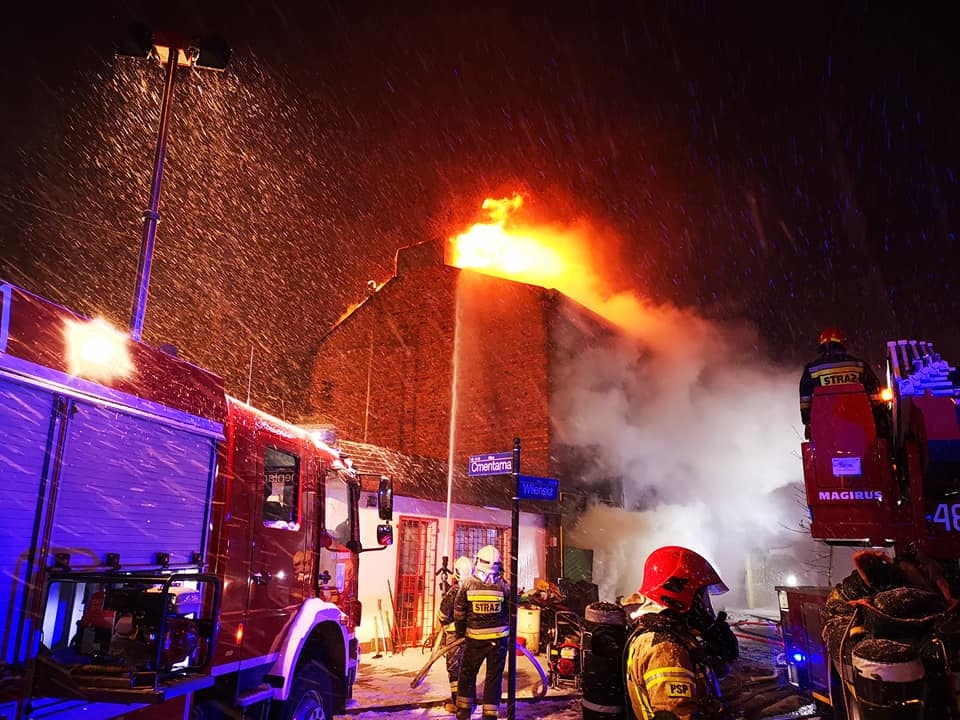 W budynku mieszkały dwie osoby. Jedna zajmowała się tzw. zbieractwem. Budynek był wypełniony śmieciami i materiałami łatwopalnymi, co sprawiało, że pożar był trudny do opanowania.