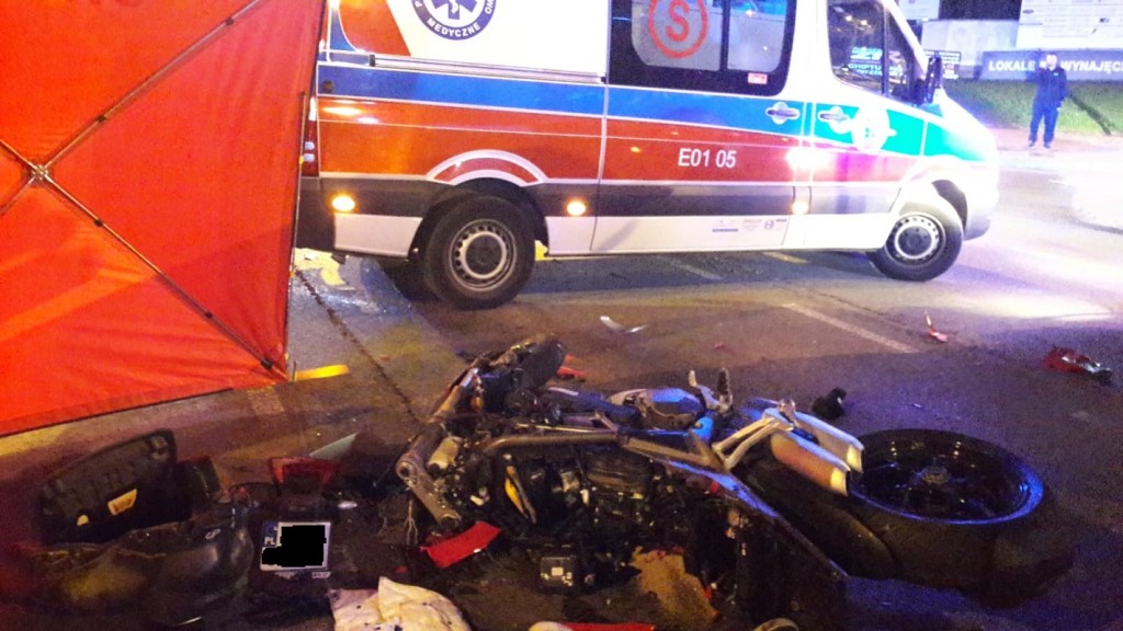 Kolejny wypadek z udziałem motocyklisty miał miejsce w sobotę około godziny 13.00 na ul. Kusocińskiego. Ze wstępnych ustaleń wynika, że 39-letni kierujący motocyklem omijając ciąg pojazdów zderzył się ze skręcającym w lewo samochodem kierowanym przez 35-letnią kobietę. Na skutek zderzenia motocykl wypadł z jezdni i uderzył w zaparkowany samochód fiat ducato. Motocyklista poniósł śmierć na miejscu.