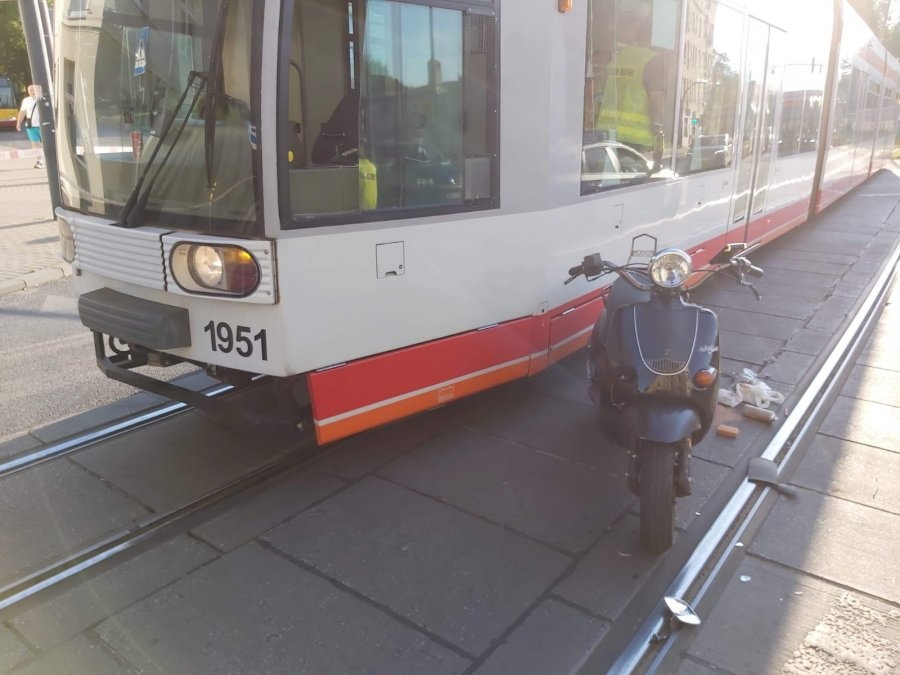 Z dotychczasowych ustaleń wynika, że 51-letni kierujący skuterem Aprilla jadąc ulicą Limanowskiego od Zachodniej podczas skręcania w ulicę Klonową wjechał pod nadjeżdżający z przeciwka tramwaj.