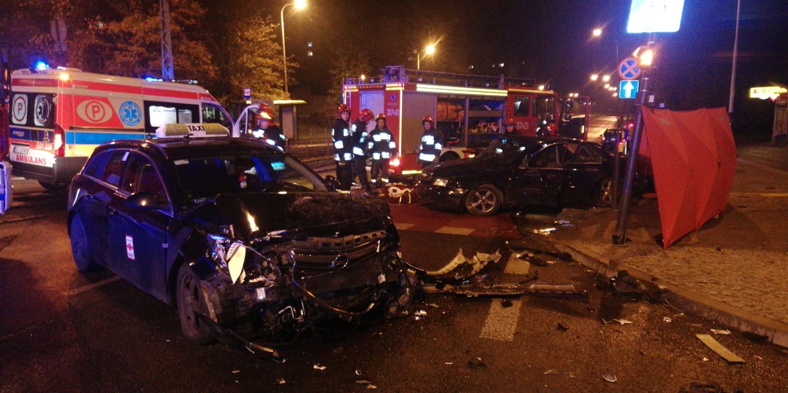 Siła uderzenia była tak duża, że oba samochody zostały kompletnie rozbite. Służby, które przyjechały na miejsce próbowali wydostać w wraku Audi zakleszczone osoby. Gdy to zadanie udało się zrealizować, okazało się, że siedząca na miejscu pasażera 43-letnia kobieta nie żyje.