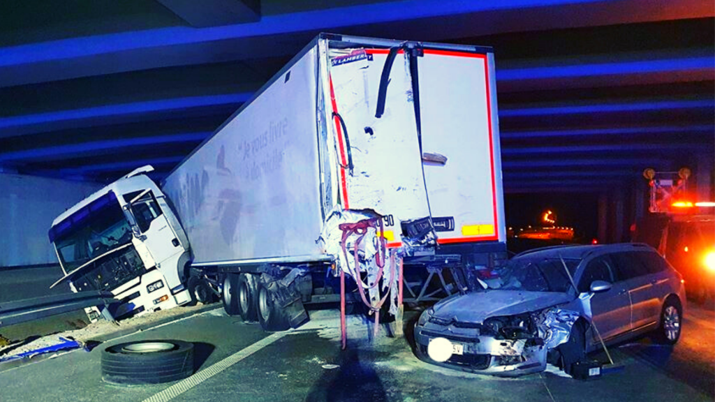 Zaskoczony zdarzeniem kierowca osobowego Citroena nie wyhamował i wjechał w MANa. Samochodem podróżowała rodzina z Częstochowy jadąca na wakacje.