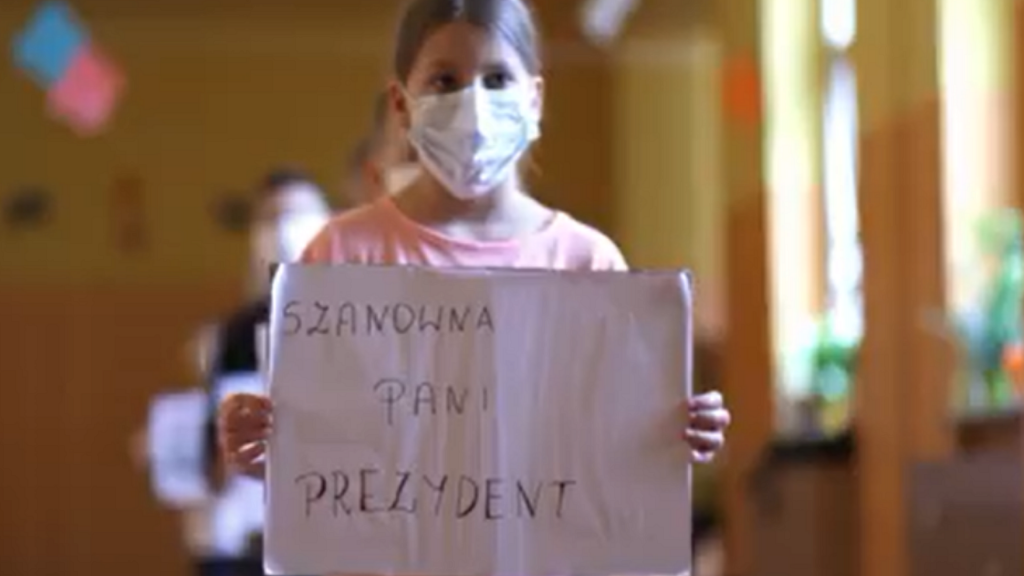W filmie z twarzami zasłoniętymi maseczkami prezentują swój postulat do prezydent Hanny Zdanowskiej, ujęty na kolejnych tekturowych szablonach. Uczniowie domagają się, aby magistrat odstąpił od łączenia oddziałów w podstawówce przy ul. Sterlinga 24.