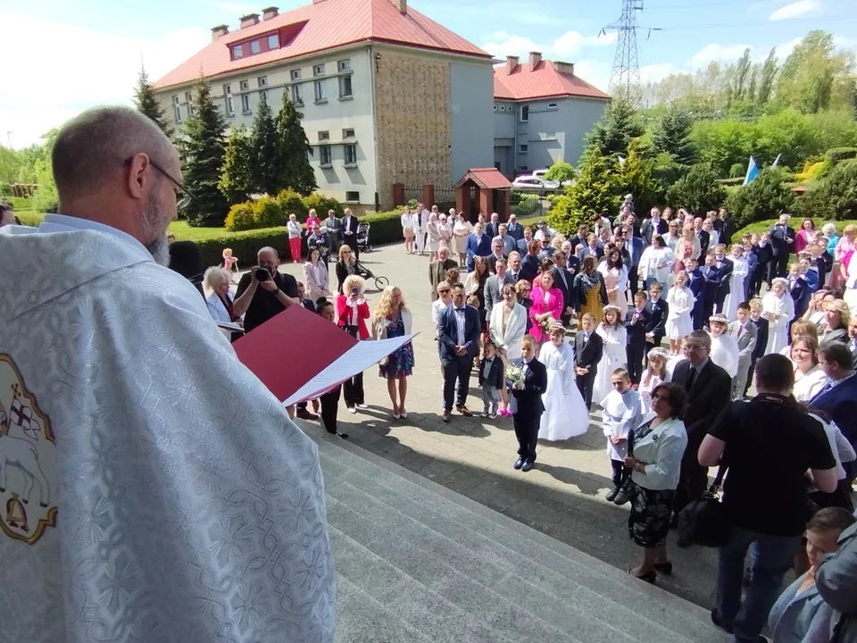 Uśmiechnięte dziewczynki pięknie prezentowały się w białych sukienkach i wiankach na głowach, zaś chłopcy - w eleganckich garniturach. Członkowie rodzin również przyszli odświętnie ubrani.