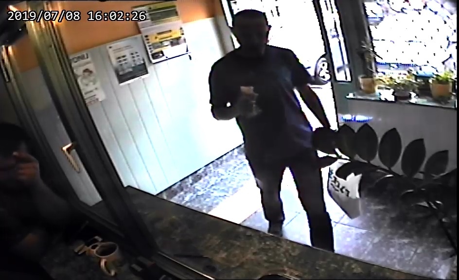 Sprawca był w wieku około 35 lat, szczupłej budowy ciała. W dniu kradzieży był ubrany w koszulkę z krótkim rękawkiem, koloru ciemnego.