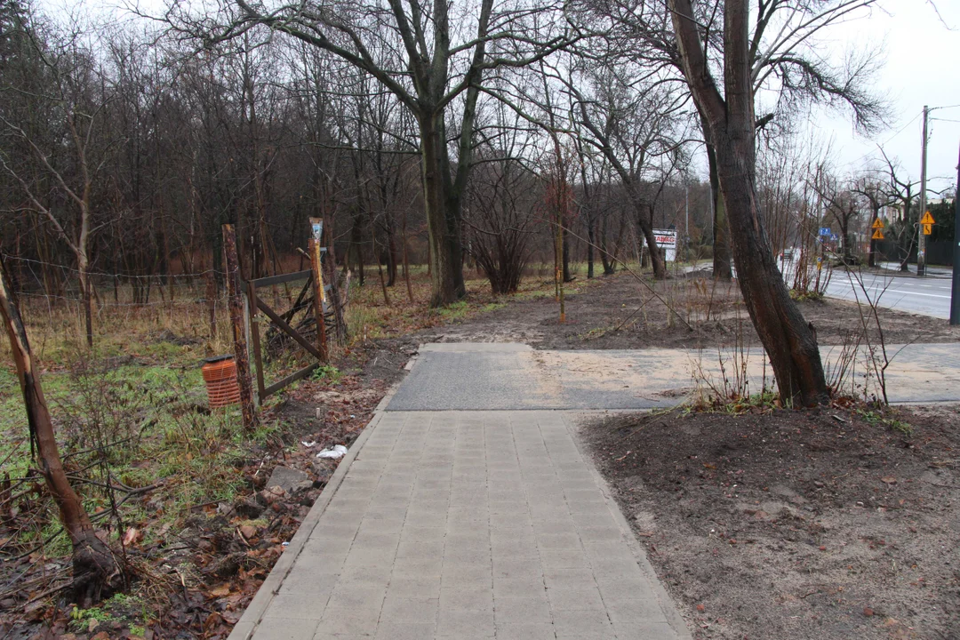 Nowy chodnik i nowe dojazdy do posesji znajdziemy tylko do pewnego fragmentu. Wielu pieszych i rowerzystów wybiera jednak drogę dalej, o czym świadczą ślady butów i opon jednośladów na ziemi za chodnikiem.