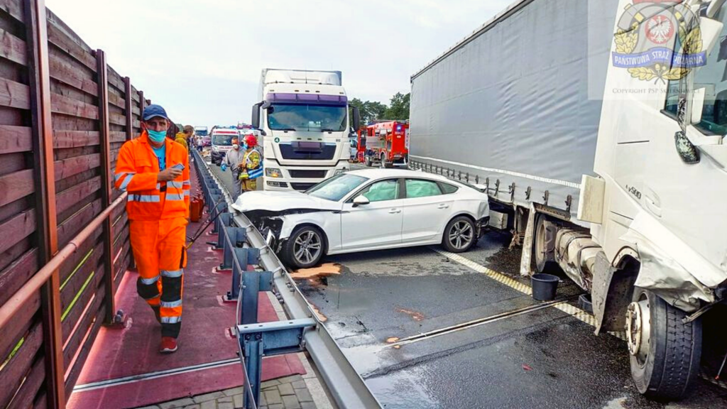 Jak powiedział nam kpt. Bartłomiej Wójcik, oficer prasowy Komendanta Miejskiego Państwowej Straży Pożarnej w Skierniewicach, doszło do wypadku z udziałem 5 pojazdów: dwóch ciężarowych, dwóch osobowych i jednego dostawczego.