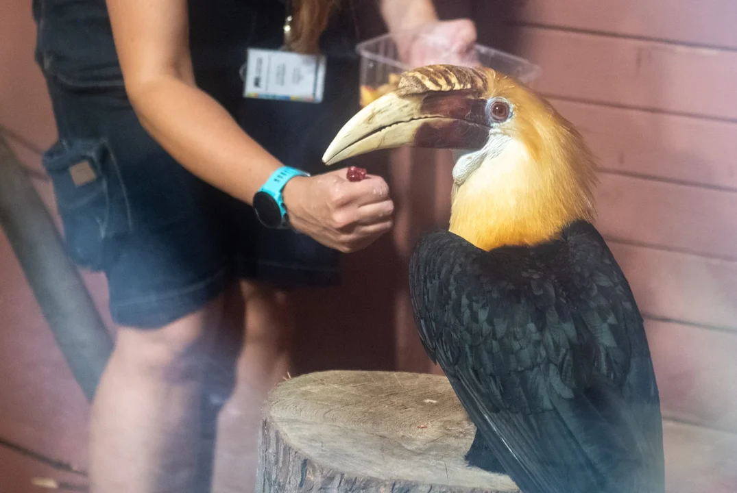 Nowy mieszkaniec Orientarium. Ma narośl na dziobie