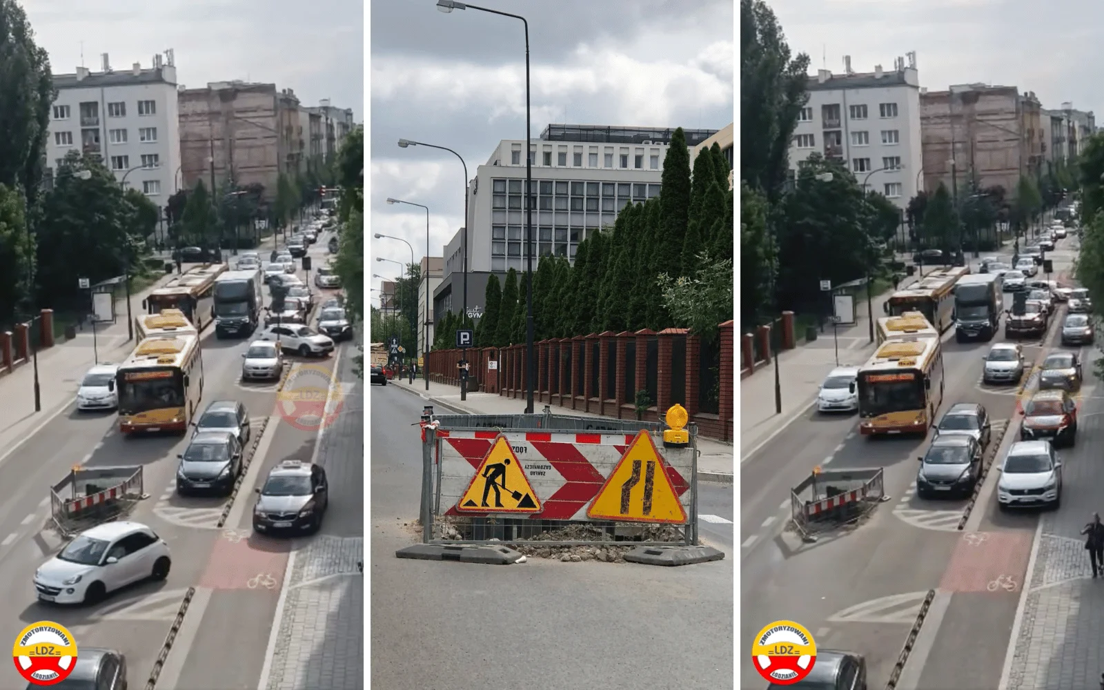 Na nagraniu opublikowanym przez profil LDZ Zmotoryzowani Łodzianie widać, jak kierowcy, którzy zauważyli, że autobus nie może przejechać wybrali „objazd” przez drogę dla rowerów.