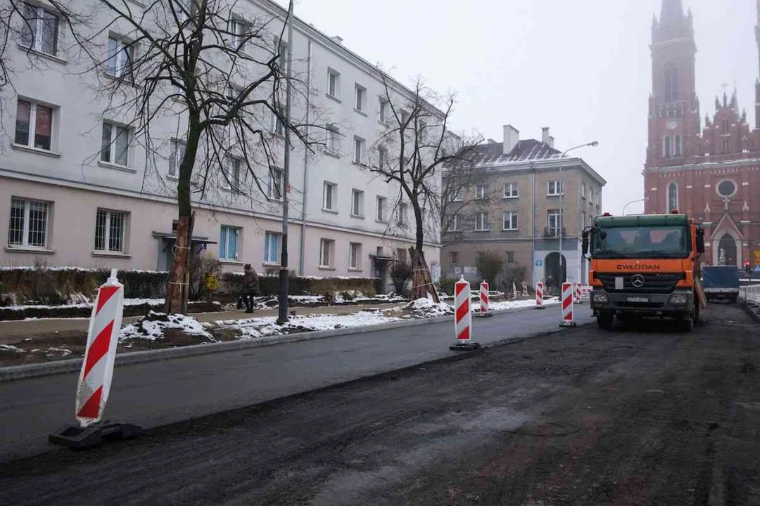 Na przebudowywanym fragmencie ul. Lutomierskiej wykonano już część prac - na jednej połowie jezdni pojawiła się nowa nawierzchnia, a także gotowe są chodniki.