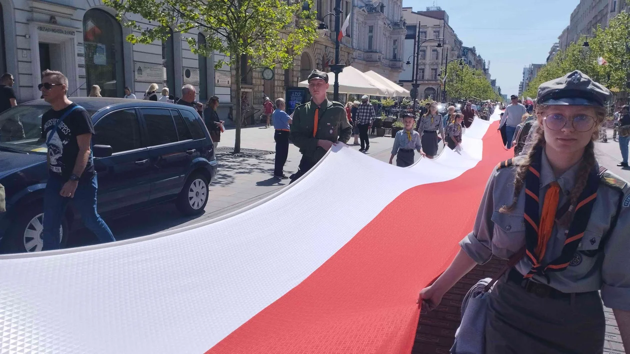 Maszerujący wyruszyli z pasażu Schillera i główną ulicą miasta dotarli na Stary Rynek, gdzie odśpiewano hymn państwowy. Pochód prowadziła orkiestra dęta MPK Łódź, idącym towarzyszył też Zespół Pieśni i Tańca "Kujon". Wcześniej łódzcy samorządowcy, w tym m. in. prezydent Hanna Zdanowska, rozdawali przechodniom małe flagi państwowe. Pani prezydent szła poza tym na czele biało-czerwonego pochodu.