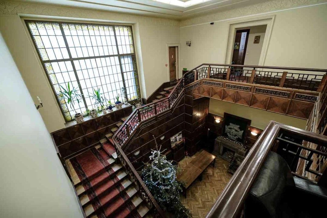 Najwięcej mówi jednak wnętrze. Trójtraktowy układ pomieszczeń z dwukondygnacyjnym holem i galerią nadaje willi charakter reprezentacyjny, a jednocześnie zachowuje atmosferę domu. Marmurowe schody w przedsionku, drewniane schody w holu, boazerie, sztukaterie, marmurowe kominki, witraże i oryginalna stolarka budują świat, w którym estetyka była częścią codzienności.Po śmierci Zygmunta Richtera w 1923 roku willa pozostała własnością jego żony, Emmy Matyldy z Kleistów, i ich sześciorga dzieci. W 1927 roku rodzina sprzedała nieruchomość Włókienniczej Spółce Akcyjnej Nauma Eitingona. W okresie międzywojennym wnętrza wzbogacono o subtelne elementy art déco, widoczne zwłaszcza w klatce schodowej, przy jednoczesnym zachowaniu neorenesansowych i neorokokowych form salonów. Dziesięciopokojowa willa nadal pełniła funkcję prywatnego domu.