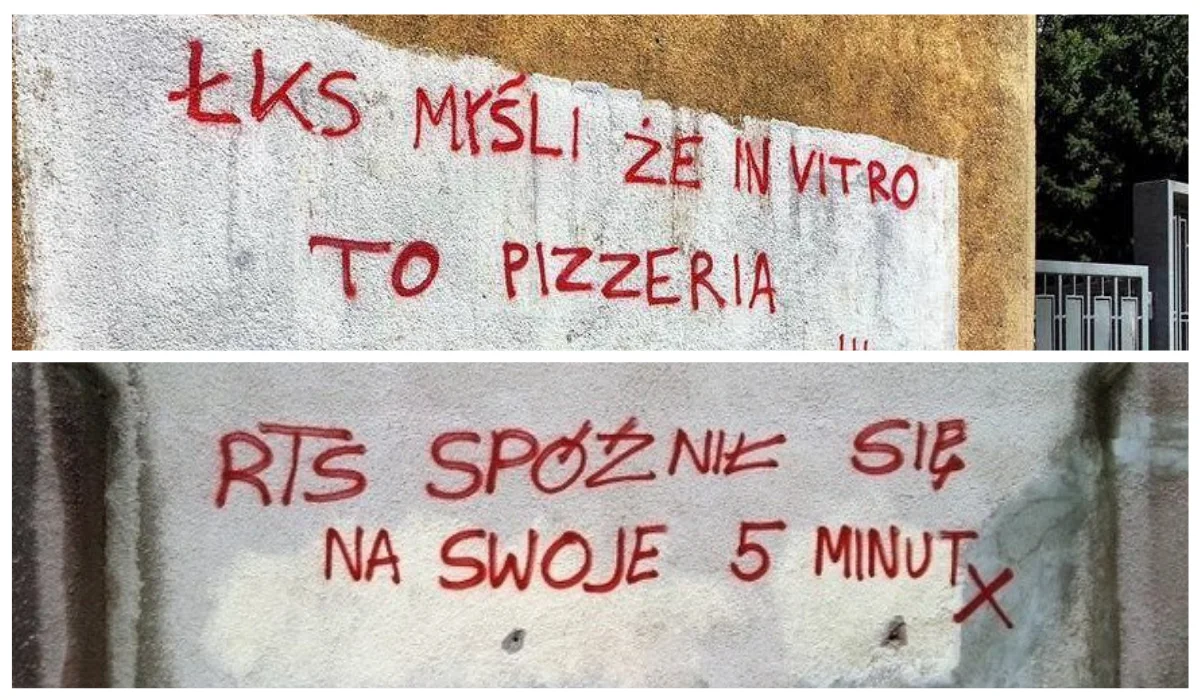 Kibicowskie docinki na łódzkich murach. Mieszkańcy polubili abstrakcyjny humor