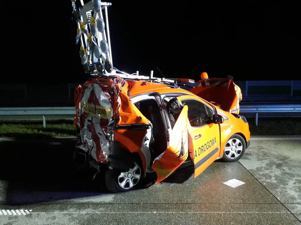 - W miejscu trwającego zdarzenia drogowego pojazd ciężarowy uderzył w busa służby drogowej, raniąc jedną osobę - poinformowała GDDKiA.