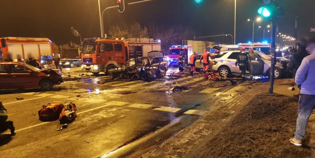 - W nieustalonych okolicznościach kierujący BMW zjechał na skrzyżowaniu na przeciwległy pas ruchu i doprowadził do zderzenia z 6 pojazdami. W wyniku zdarzenia 5 osób trafiło do szpitali" - czytamy na Facebooku Policji Województwa Łódzkiego.