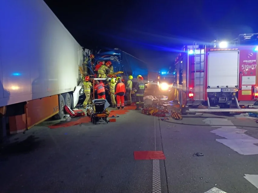 Ze wstępnych ustaleń służb wynika, że kierowca jednego z pojazdów nie zachował ostrożności i najechał na tył poprzedzającego go samochodu. 29-latek został zakleszczony w szoferce. Efektem zderzenia było zablokowanie dwóch pasów ruchu.