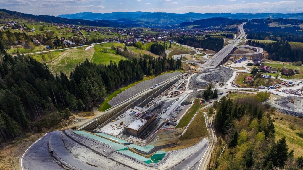 Dwukomorowy tunel na Zakopiance o długości 2060 m powstaje w ramach odcinka S7 Naprawa - Skomielna Biała.