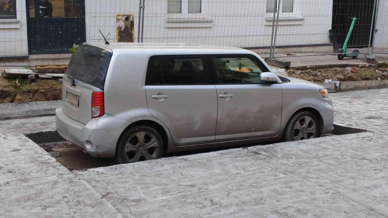 Zabetonowany samochód. "Takie rzeczy tylko w Łodzi!"