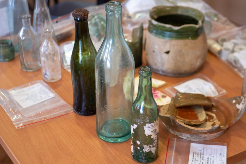 Buteleczki, menzurki i inne aptekarskie narzędzia znaleziono podczas prac remontowych w parku Sienkiewicza w Łodzi (fot. UML) |wiadomości łódzkie|Łódź|TuŁódź |