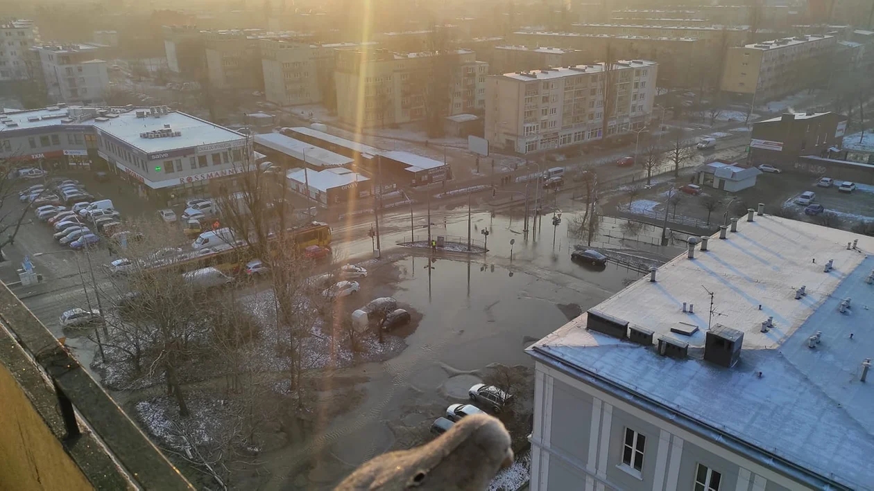 Do dużej awarii wodociągowej doszło we wtorek 11 stycznia 2022 roku około godziny 7:30. Lepiej omijać skrzyżowanie Łagiewnicka / Dolna, na które wylały się hektolitry wody. Problem jest tym większy, że woda szybko zamarza, tworząc istne lodowisko.