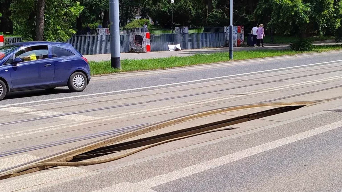 Naprzeciwko parku Reymonta wystrzeliła szyna w powietrze