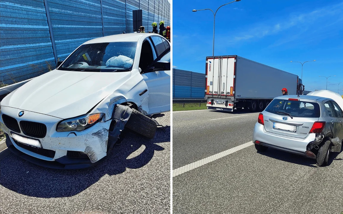 Obyło się bez osób poszkodowanych, pojazdy biorące udział w kolizji zjechały na pas awaryjny.