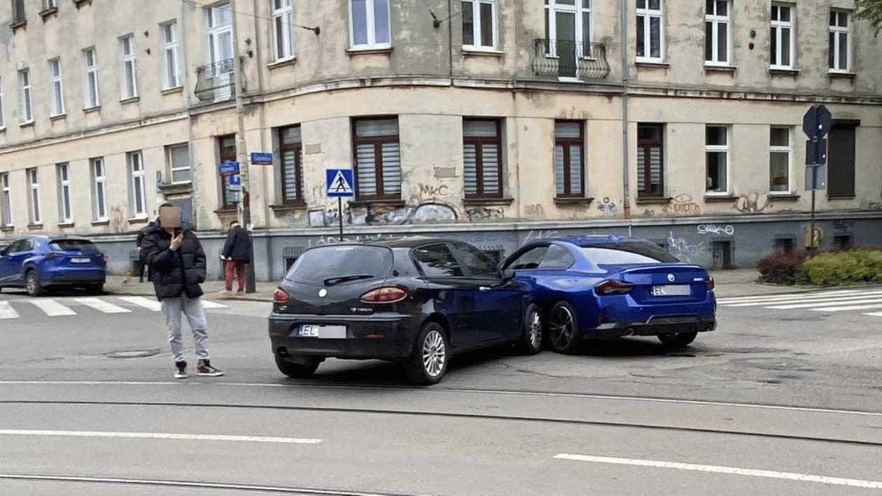 Zderzenie alfy i bmw na Starym Polesiu w Łodzi