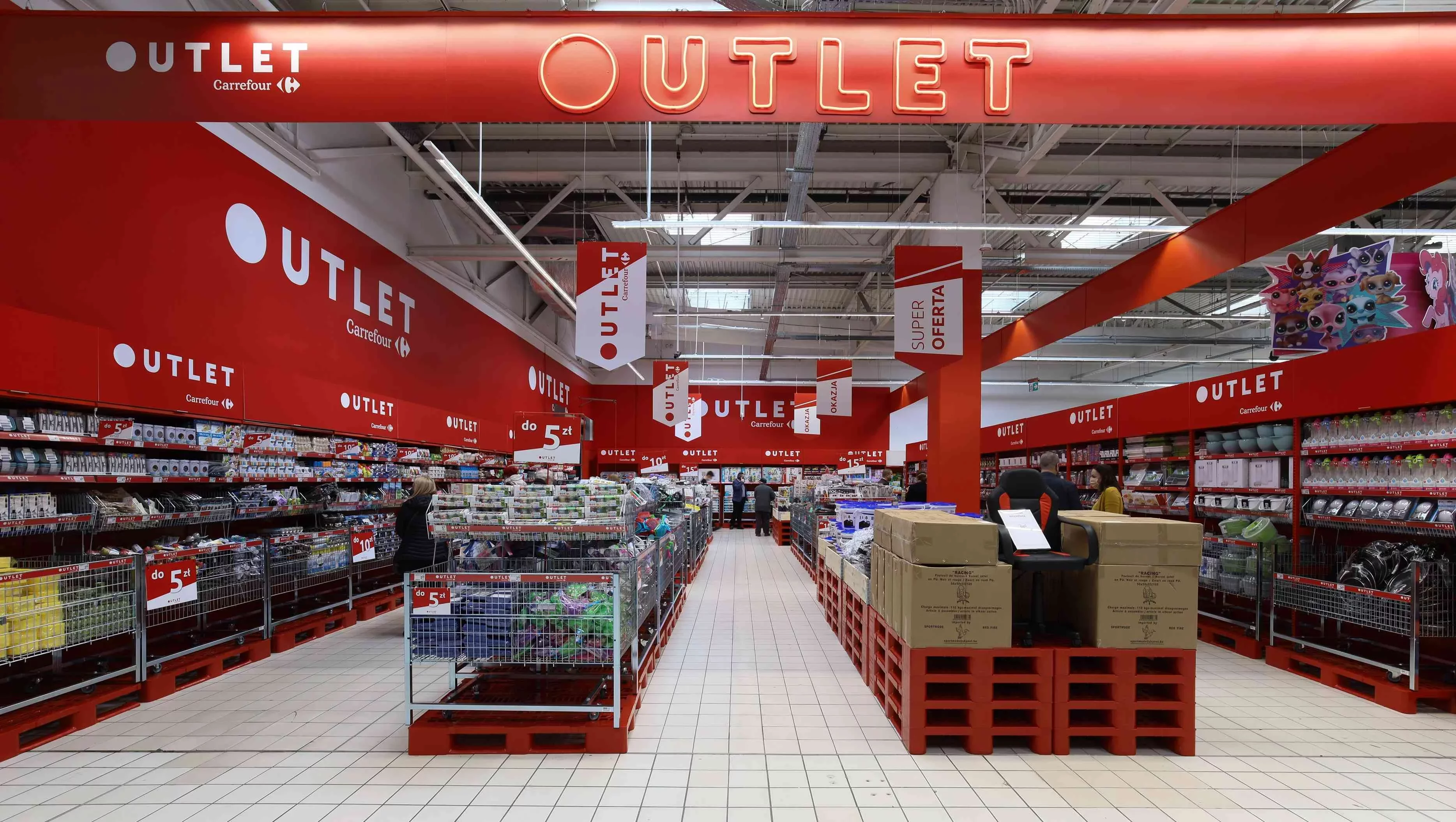 Chodzi o Carrefour. Poza Łodzią takie strefy działają też w sklepach m.in w Warszawie, Krakowie i Toruniu. Asortyment w outletach jest grupowany według cen: do 5 zł, do 10 zł, do 15 zł i produkty w bardzo niskich cenach zaczynających się od 29 groszy. Jest też kategoria tematyczna.