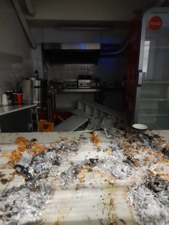 - przyznaje. Marcin Tarociński podaje, że kibice nie tylko niszczyli wszystko, co spotkali, na swojej drodze, ale również włamali się do punktu gastronomicznego i próbowali go spalić.