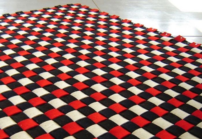 MOZAIKA jako autorska koncepcja filcowych dywanów modułowych, oparta jest na specjalnie opracowanym detalu, pozwalającym na składanie tkanin w dowolne kombinacje wzornicze. To system modułowy, który pozwala w prosty sposób przeprojektować powstały przedmiot, jego wzór, wielkość, format i sposób wykończenia.