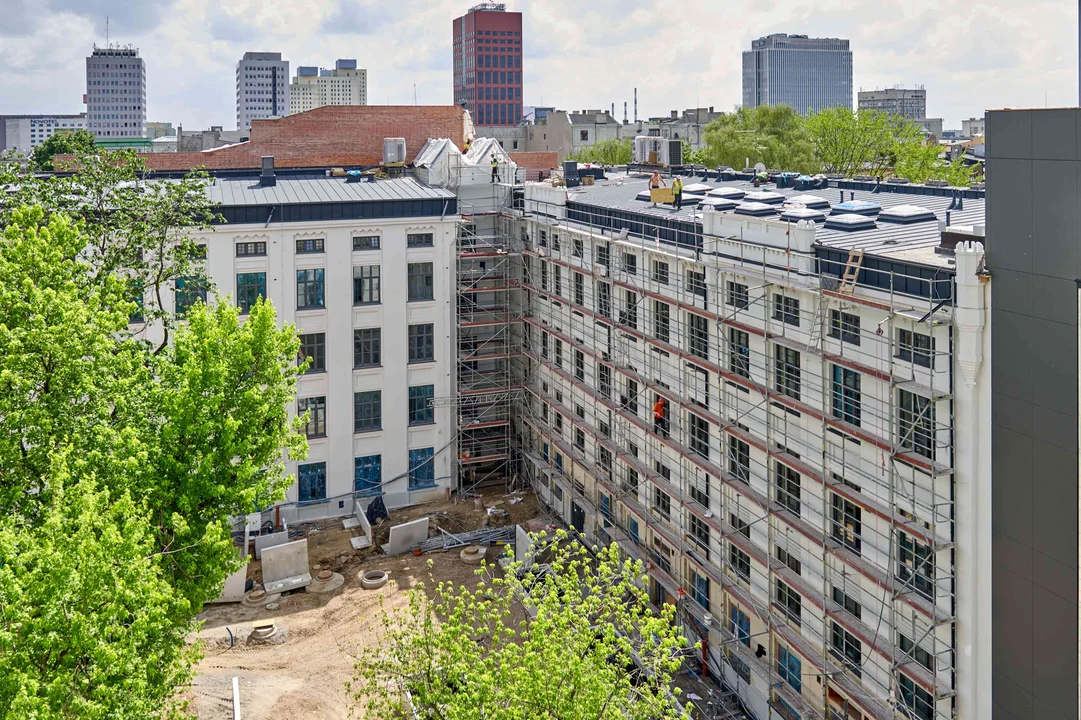 Ekipy budowlane pracują przy ostatnich wykończeniach detali architektonicznych, ale fachowców nie brakuje również we wnętrzach. Na placu budowy trwają prace murarskie, stolarskie oraz instalacyjne. Wykonawca przygotowuje się do zagospodarowania terenu podwórza.